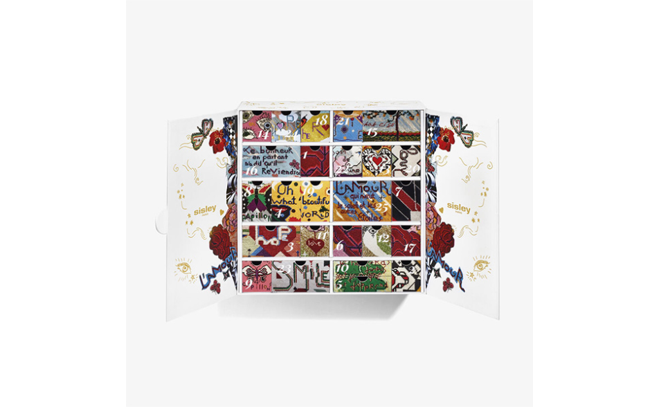 Ogni uno dei venticinque cassetti del calendario nasconde un regalo prelibato selezionato con cura tra le collezioni di cura della pelle, trucco, cura dei capelli e fragranze di Sisley.